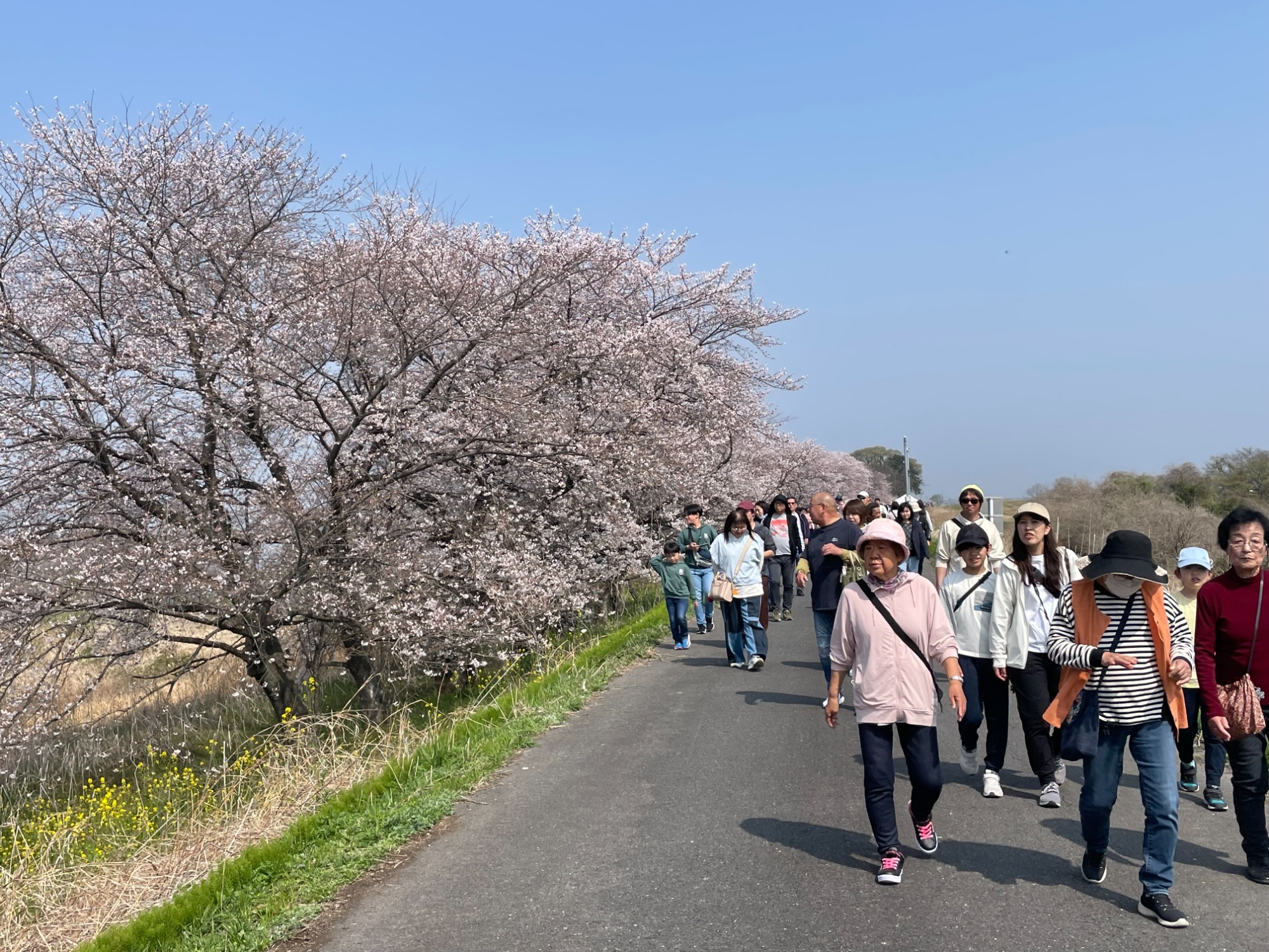 過日、3月29日(日)国営木曽川三川公園桜堤サブセンター広場にて桜堤ウォーキング大会が開催されました。昨年は、強風の為、残念ながら中止となってしまいましたが、今年は、晴天にも恵まれ、参加された皆さんは、満開の桜を見ながらのウォ―キングを楽しんでみえました。